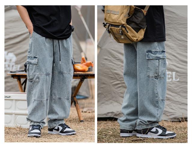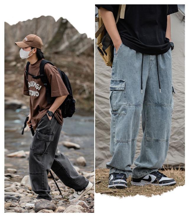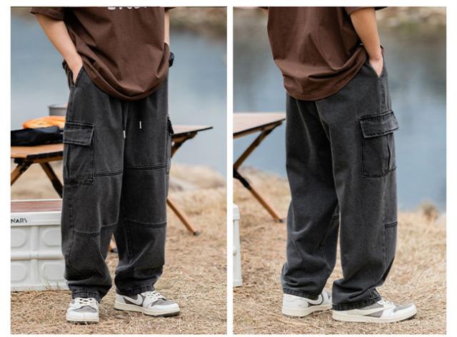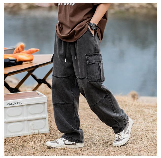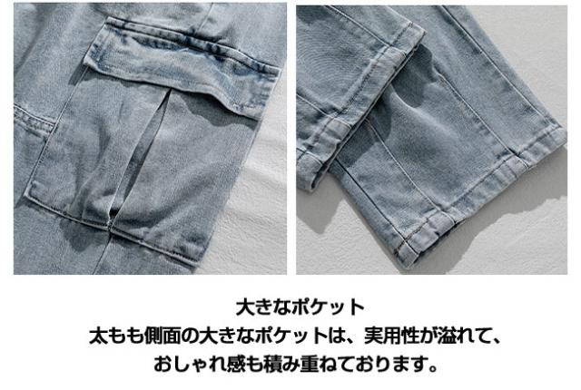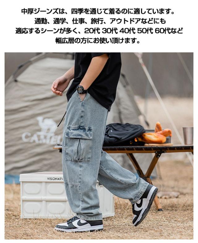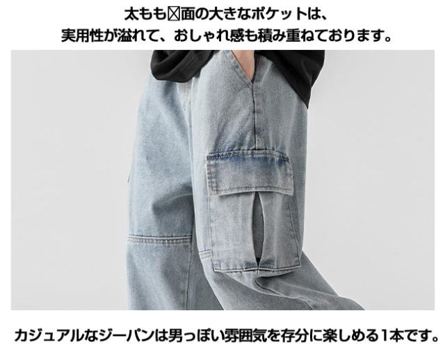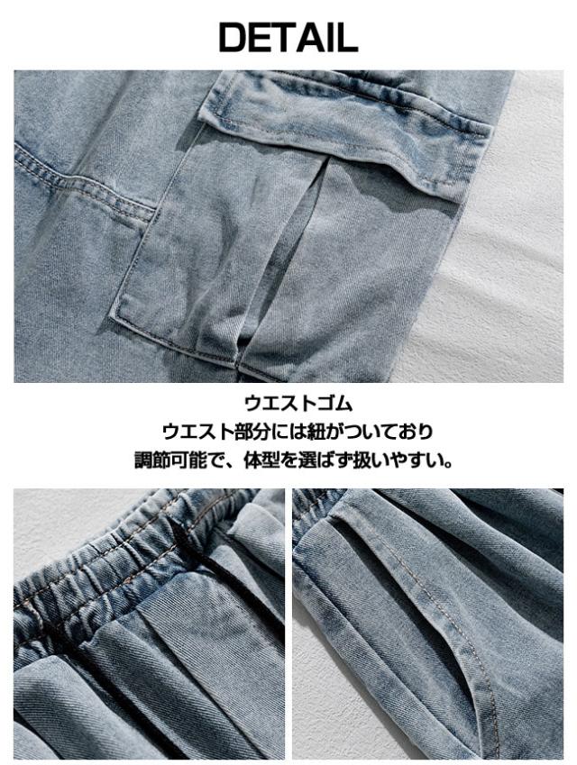 秋新作 カーゴパンツ メンズ デニム ワイドパンツ ウエストゴム ジーンズ サルエル ビッグシルエット ロング カジュアル カッコイイ