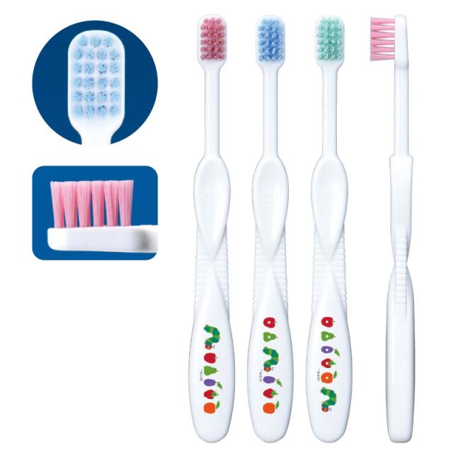 不朽の名作『はらぺこあおむし』と鮮やかなカラー毛で楽しい歯みがきができます。