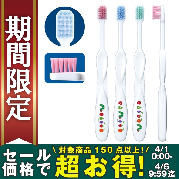 不朽の名作『はらぺこあおむし』と鮮やかなカラー毛で楽しい歯みがきができます。