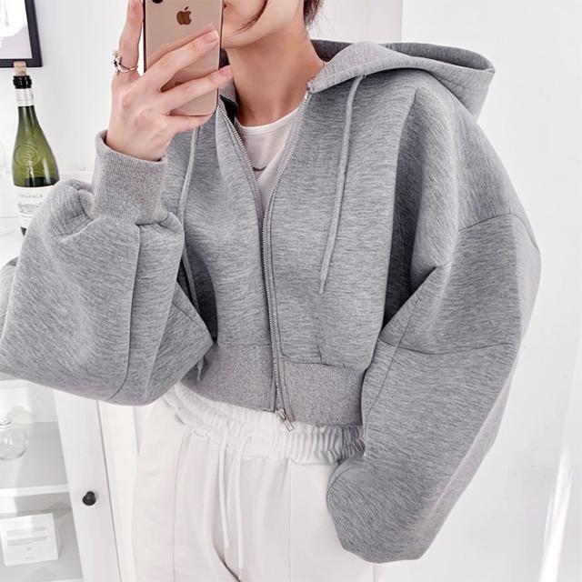 新作 パーカー レディース 秋冬 長袖 スウェット ショート丈 クロップド丈 ダンボール ジップ アウター トップス おしゃれ 大きいサイズ 羽織り 上着 スエット