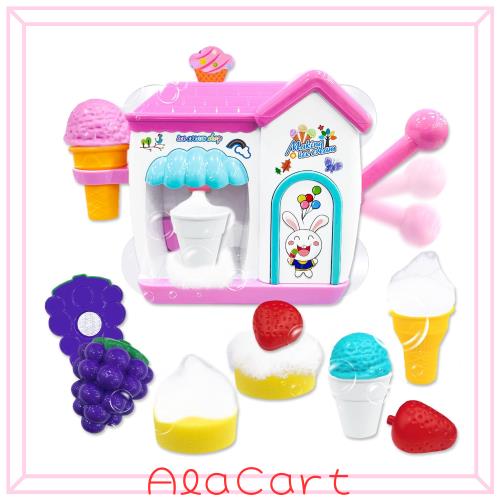 アイス屋さんごっこを楽しめる:店員さんになってバブルソフトクリームを上手に巻くことに挑戦!!更にいちご・ぶどうなどの小物が付いているので、泡でかわいいショートケーキを作り上げることも可能ですよ!