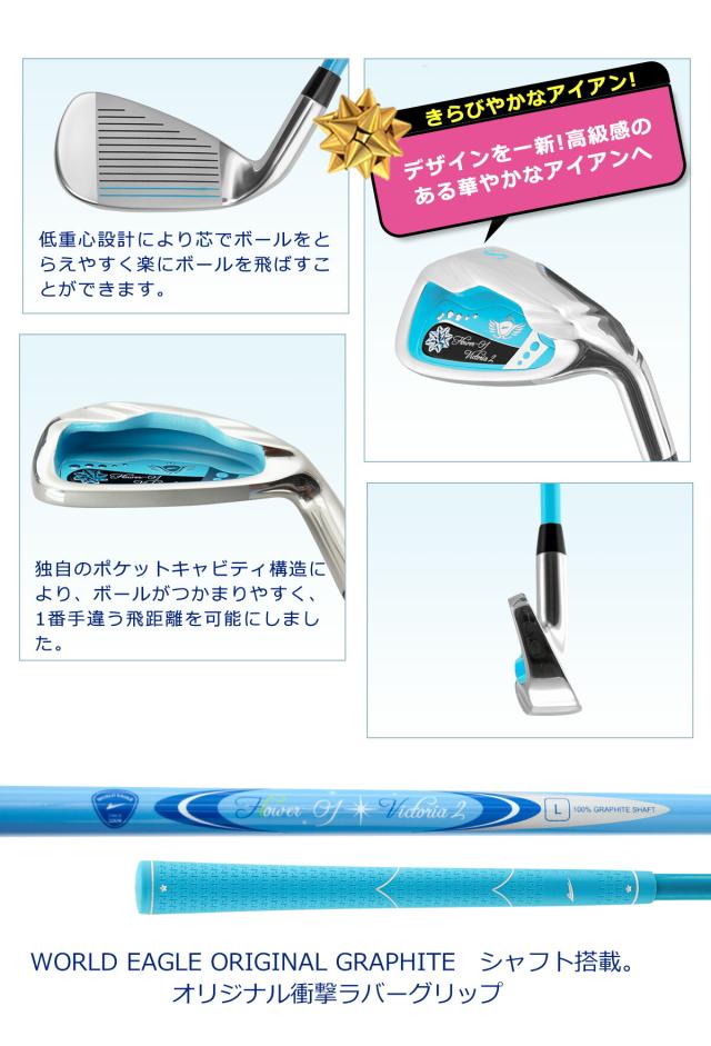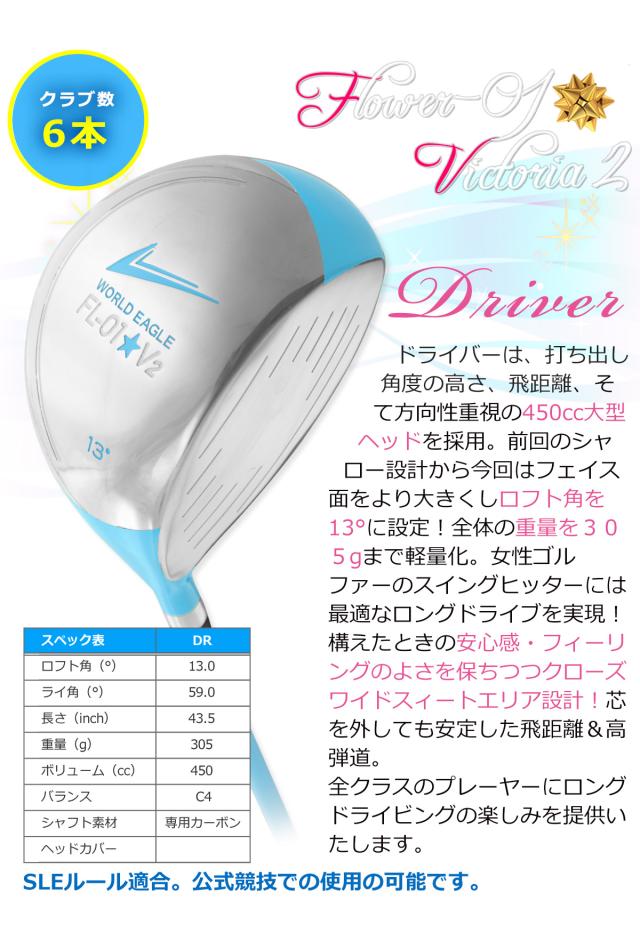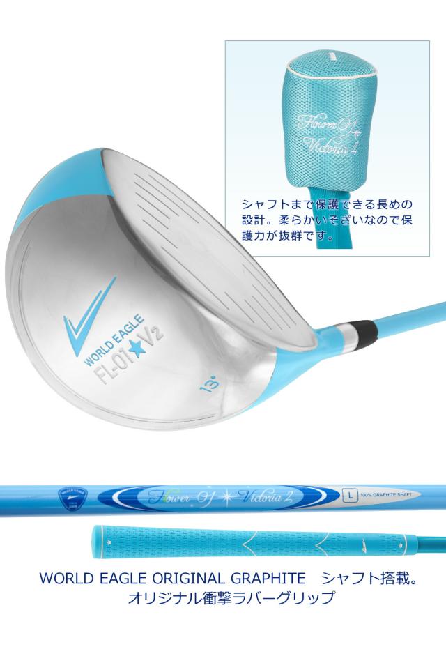 春のグリーンキャンペーン ワールドイーグル ゴルフ レディース FL-01 UT入り8点 クラブセット 右用 セルフスタンドクラブケース付き アクアブルー ハーフセット スターターセット 6本