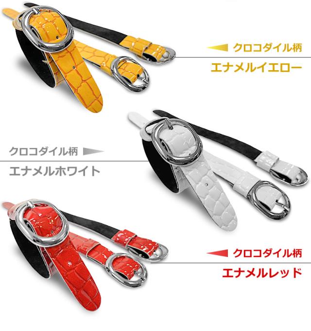 カラー :クロコダイル柄 フェイクレザー製:エナメルブラック、エナメルネイビー、エナメルイエロー、エナメルホワイト、エナメルレッド