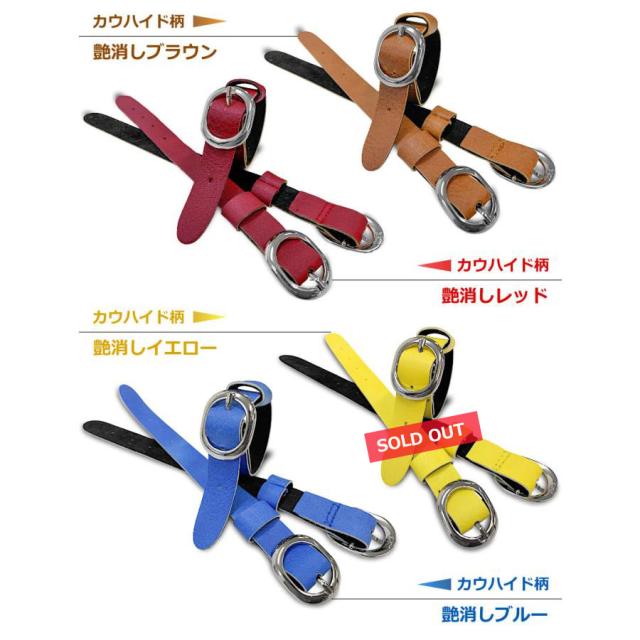 カウハイド(牛革)柄フェイクレザー製:艶消しブラック、艶消しホワイト、艶消しブラウン、艶消しレッド、艶消しイエロー、艶消しブルー
