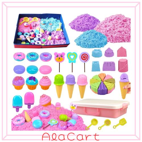 【知能を開発する】小さな頃から指先を使って遊ぶことは脳に良い刺激を与えると言われています。砂遊びは想像力を使い、形あるものを作っていく知能開発の高い遊びです。可愛いカビやシャベルが盛りだくさんですので、お城、ケーキの模型を作ってみましょう。対象は6歳以上の子供です。