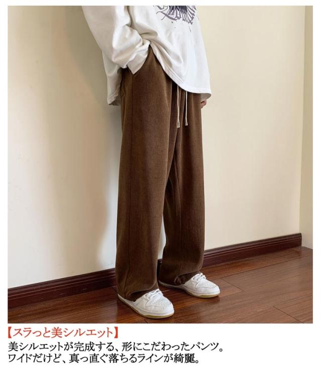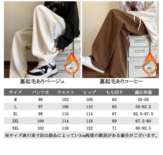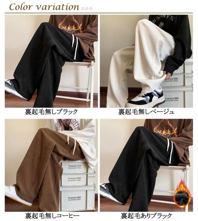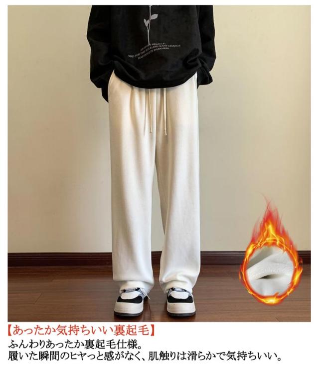 ゆったり レディース 冬 ロングパンツ 長ズボン ワイドパンツ あったか 体型カバー 裏起毛あり/無しの2タイプ 暖かい あたたかい 保温 ワイドパンツ ストレッチ 厚手 ウエストゴム 秋 コーデユロイ リブ カジュアル ナチュラル 通学
