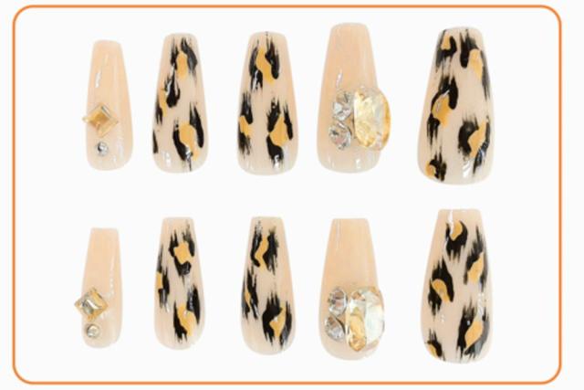 カミ224710 【送料無料】【オリジナル】 ネイルチップ【ヌーディーレオパード】【ロングスクエアタイプ】【セルフネイル】【つけ爪】【美容】【コスメ】【ガールズ】【女の子】【雑貨】【グッズ】【かわいい】