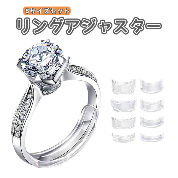 送料無料 8サイズセット リングアジャスター 指輪 サイズ調整 シリコン 半透明 目立たない クリア お手軽 便利アイテム