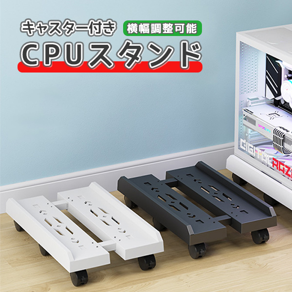 デスク周りをスッキリさせる必需品!このキャスター付きCPUスタンドは、横幅の調整が可能で、様々なサイズのPCケースに対応します。