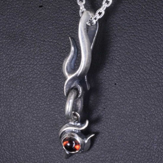 龍頭 二連 石付 火焔フック ネックレス チェーン付き ペンダント メンズ シルバー シルバーネックレス メンズネックレス 火炎 炎 天然石 シルバー950
