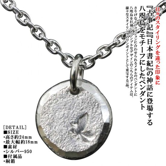 (シルバーアクセサリーシルバージュエリー シルバーブランド シルバー 日本 和風 和柄 伝統技法 日本製 国内 国産 made in JAPAN メイドインジャパン ドメスティック シルバーネックレス シルバーペンダント メンズネックレス ネックレスメンズ 生き物 動物 八咫烏 ヤタガラス 神話 鳥 烏 カラス)