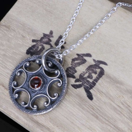 【龍頭】 いぶし 屈輪文ホイール ネックレス (チェーン付き)