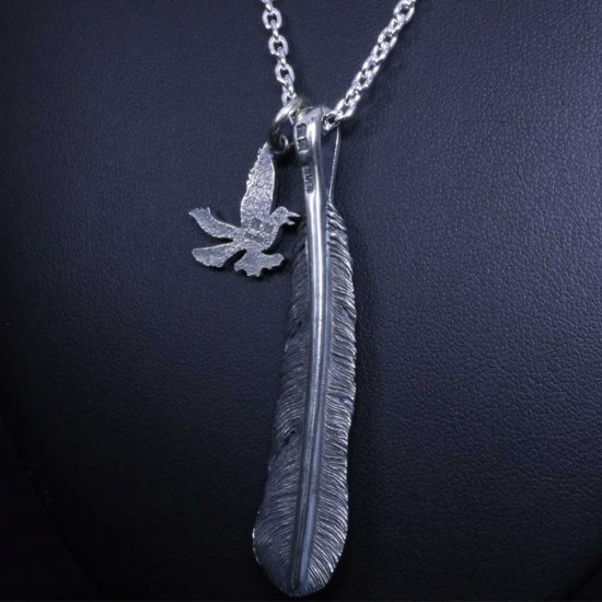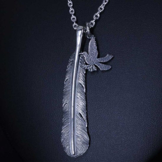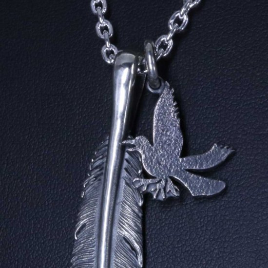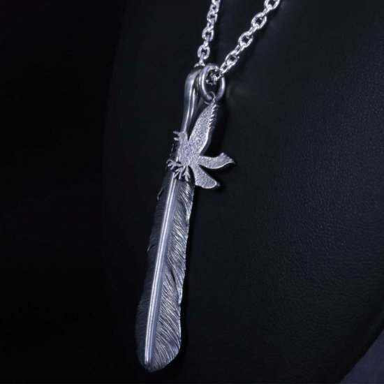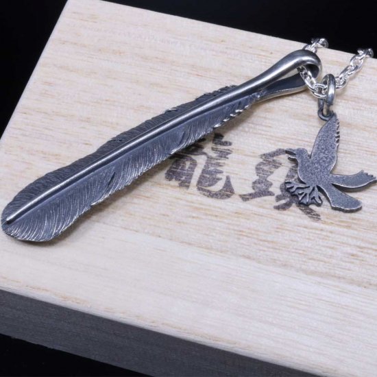 【龍頭】 燻し 八咫烏フェザー ネックレス (チェーン付き)