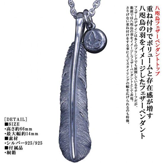 龍頭 いぶし 八咫烏 フェザー 岩石玉八咫烏トップ ネックレス チェーン付き ペンダント メンズ シルバー シルバーネックレス メンズネックレス 羽根