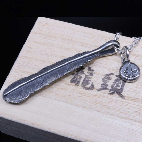 【龍頭】 燻し 八咫烏フェザー ネックレス (チェーン付き)