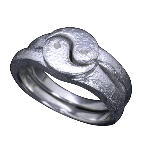龍頭 八尺瓊勾玉リング 陽陽 白仕上げ&白仕上げ