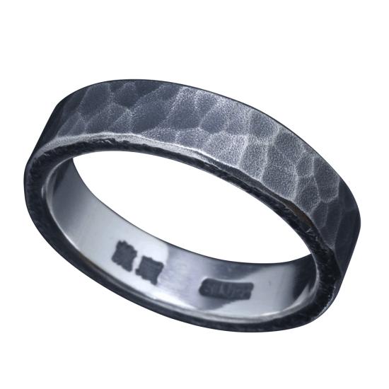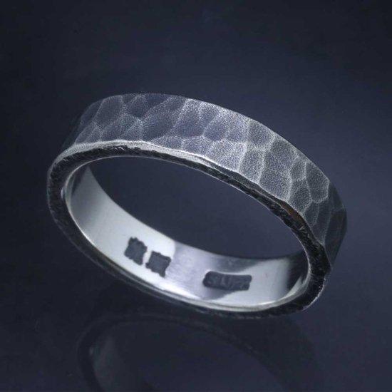 龍頭 5mm幅 丸鎚目リング 梨地 燻し仕上げ