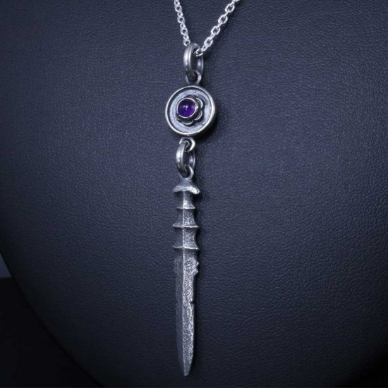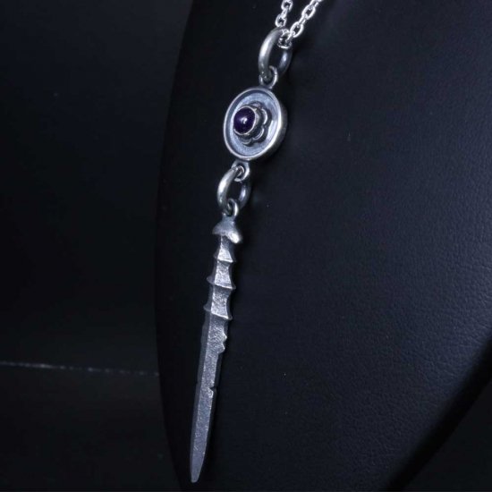 (シルバーアクセサリーシルバージュエリー シルバーブランド シルバー 日本 和風 和柄 伝統技法 日本製 国内 国産 made in JAPAN メイドインジャパン ドメスティック シルバーネックレス シルバーペンダント メンズネックレス ネックレスメンズ 剣 刀 武器 天然石 誕生石 ガーネット 赤 レッド 1月 ブルートパーズ ブルー トパーズ 青 11月 アメジスト アメシスト 紫 パープル 2月 ペリドット 緑 グリーン 8月 ムーンストーン 6月)