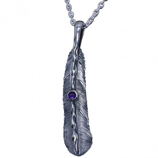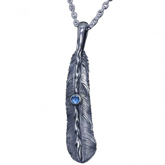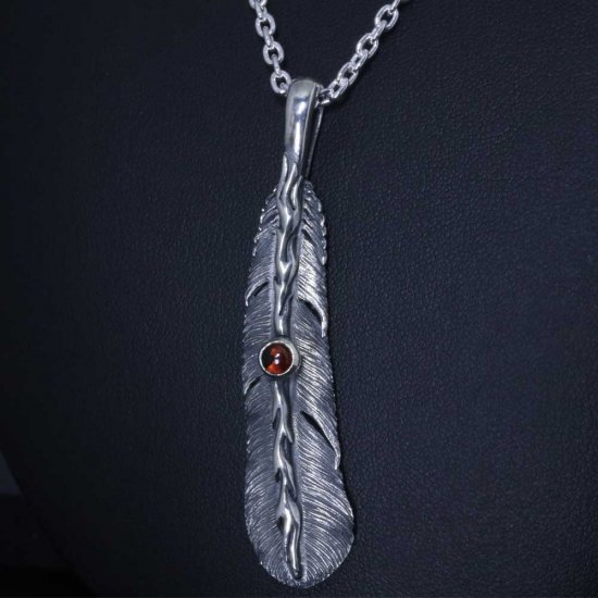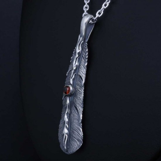 【龍頭】 石付き いぶし 火焔八咫烏フェザー ネックレス (チェーン付き)