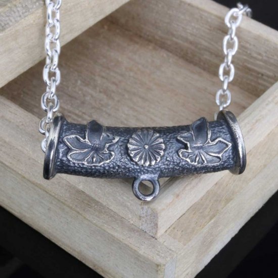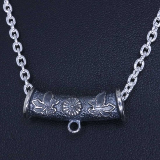 【龍頭】 双八咫烏菊紋パイプ ネックレス (チェーン付き)