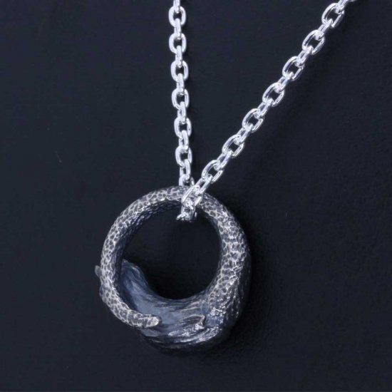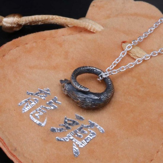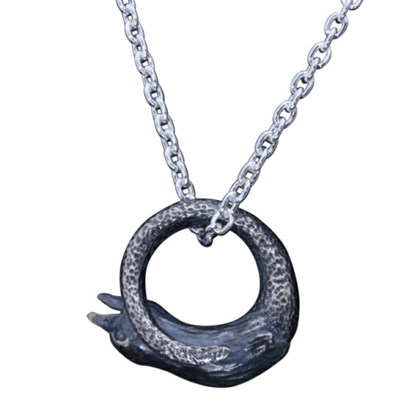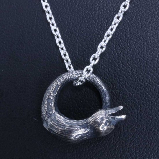 【龍頭】 いぶし 八咫烏頭サークル ネックレス (チェーン付き)