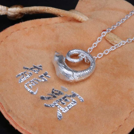 【龍頭】 白仕上げ 八咫烏頭サークル ネックレス (チェーン付き)