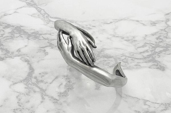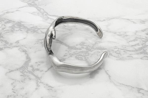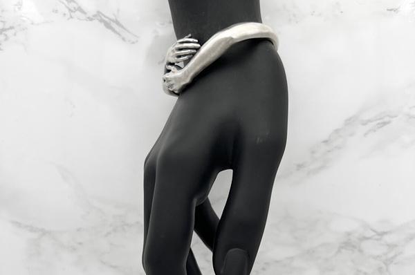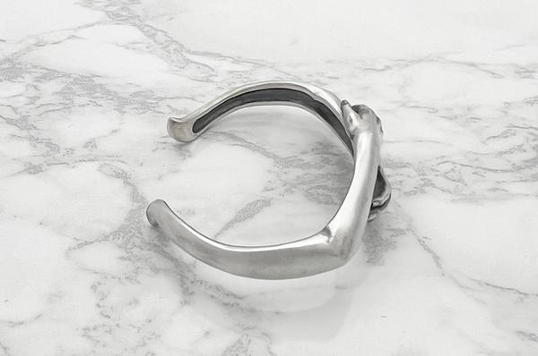 バングルのサイド部分もプレーンでありながら肌のような滑らかな曲線で構成し、着用時に正面から見た時の肘部分の見え方にもこだわりました。