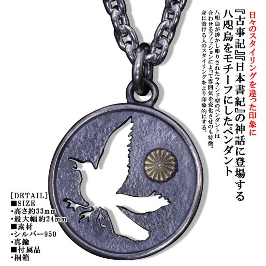 (シルバーアクセサリーシルバージュエリー シルバーブランド シルバー 日本 和風 和柄 伝統技法 日本製 国内 国産 made in JAPAN メイドインジャパン ドメスティック シルバーネックレス シルバーペンダント メンズネックレス ネックレスメンズ 真鍮 ゴールド 生き物 動物 花 フラワー 八咫烏 ヤタガラス 神話 鳥 烏 カラス)
