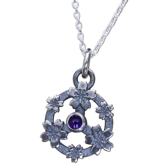 【龍頭】 天然石付き 桜ホイール ネックレス (チェーン付き)