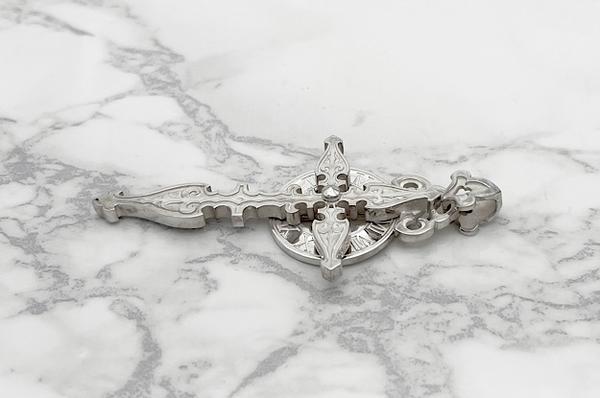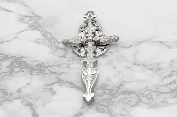 クロスは時計の針、後光は文字盤で構成された時計を思わせるクロスデザインのペンダントです。
