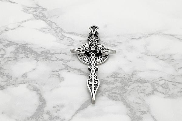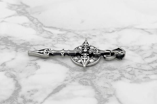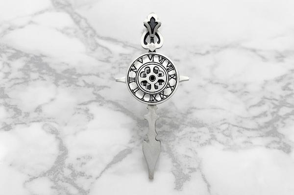 クロスは時計の針、後光は文字盤で構成された時計を思わせるクロスデザインのペンダントです。