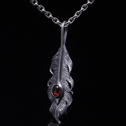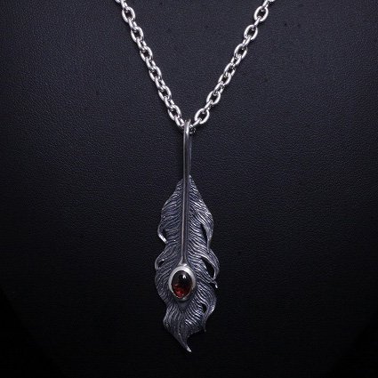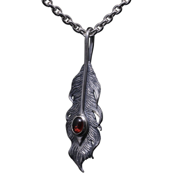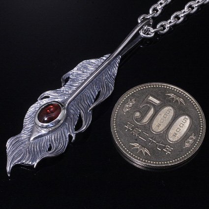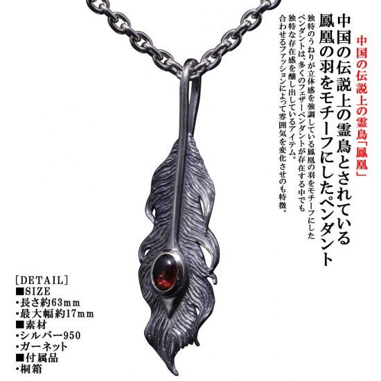 龍頭 石付き いぶし 鳳凰羽 ネックレス チェーン付き ペンダント メンズ シルバー シルバーネックレス メンズネックレス 天然石 ガーネット