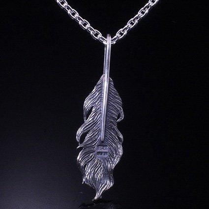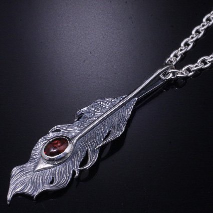 【龍頭】 石付き いぶし 鳳凰羽 ネックレス (チェーン付き)