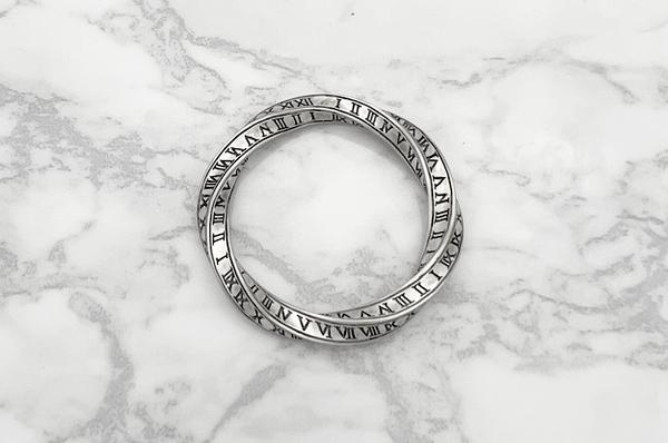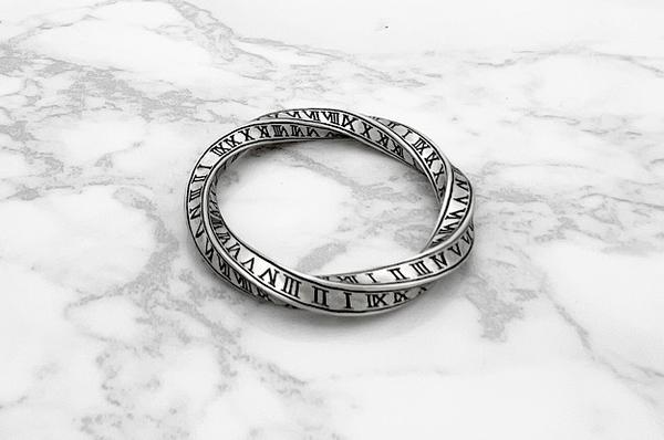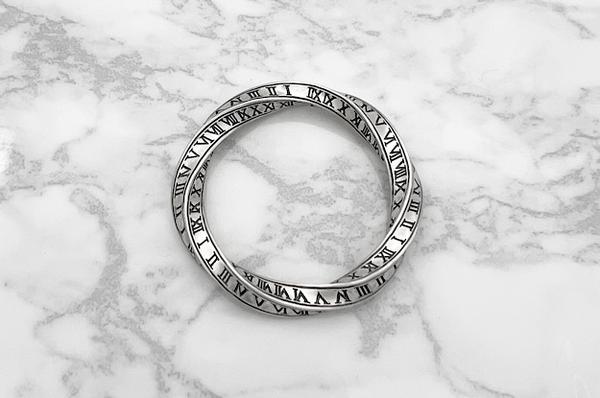 交わることのない時間の流れを捩じれた造形で表現しました。