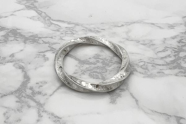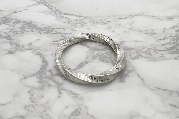 交わることのない時間の流れを捩じれた造形で表現しました。