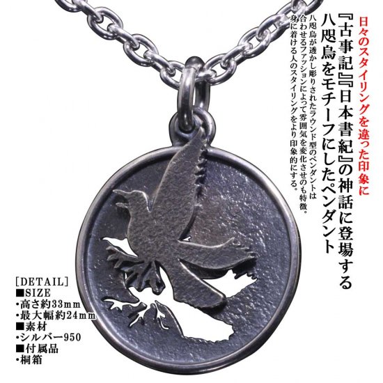 (シルバーアクセサリーシルバージュエリー シルバーブランド シルバー 日本 和風 和柄 伝統技法 日本製 国内 国産 made in JAPAN メイドインジャパン ドメスティック シルバーネックレス シルバーペンダント メンズネックレス ネックレスメンズ 生き物 動物 八咫烏 ヤタガラス 神話 鳥 烏 カラス)