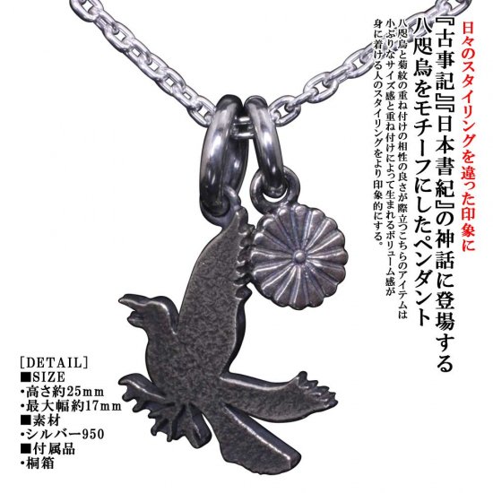 (シルバーアクセサリーシルバージュエリー シルバーブランド シルバー 日本 和風 和柄 伝統技法 日本製 国内 国産 made in JAPAN メイドインジャパン ドメスティック シルバーネックレス シルバーペンダント メンズネックレス ネックレスメンズ 生き物 動物 花 フラワー 八咫烏 ヤタガラス 神話 鳥 烏 カラス)