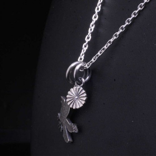 龍頭 いぶし 八咫烏×菊紋 ネックレス チェーン付き ペンダント メンズ シルバー シルバーネックレス メンズネックレス 生き物 動物 花 ヤタガラス