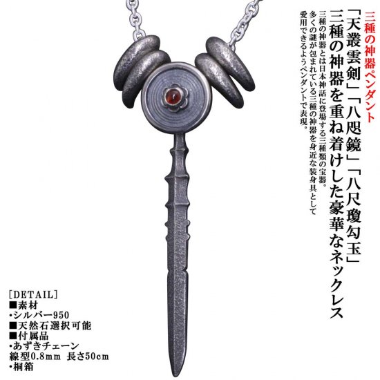【龍頭】 いぶし 三種の神器 ネックレス (チェーン付き)