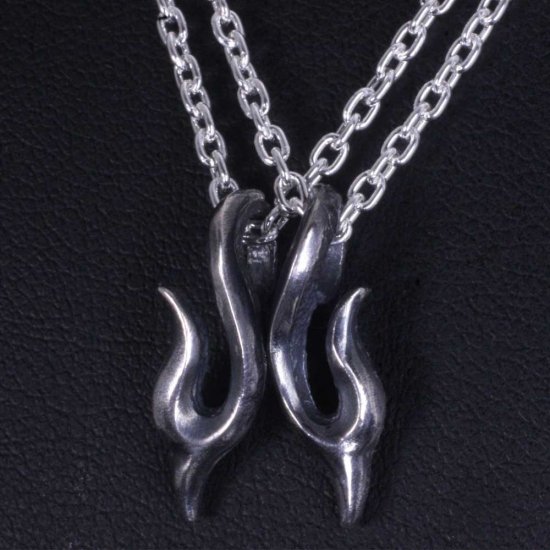 【龍頭】 いぶし 火焔 L&R ネックレス (チェーン付き)
