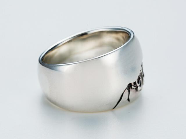 丁寧に磨き上げたプレーンな表面から、溶け込むようにキングゲートが見え隠れするリング。