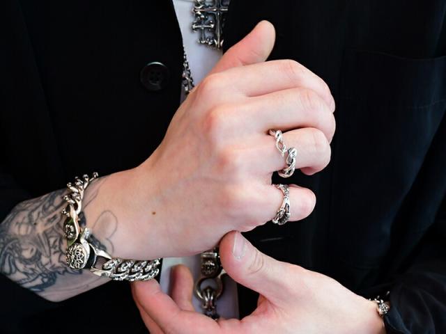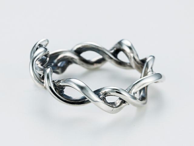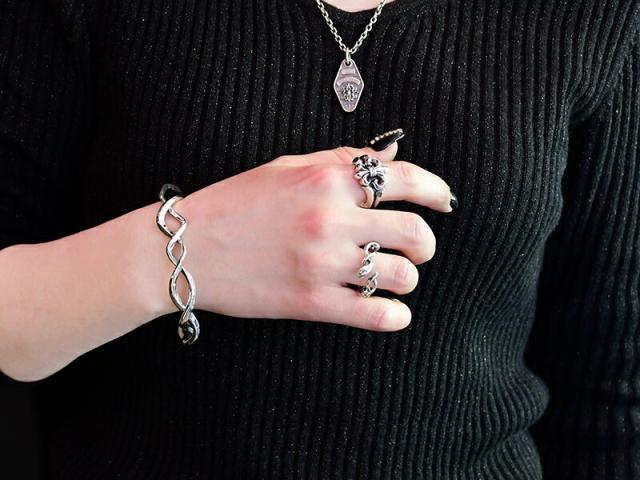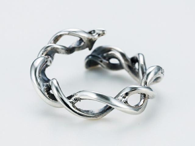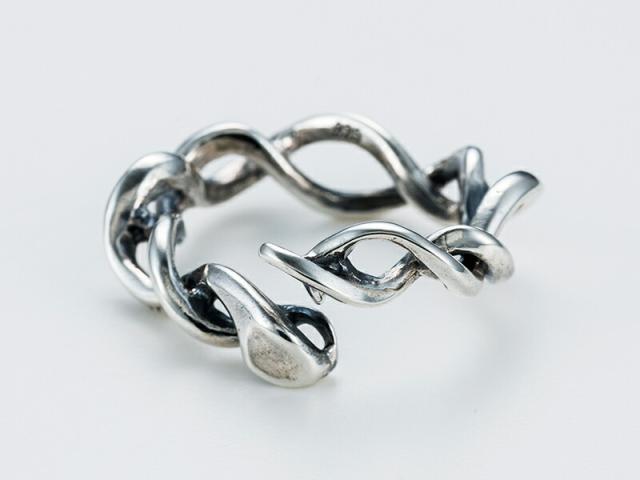 捻じりとうねりを見事に融合させてヘビをデザインしたフリーサイズのリング。