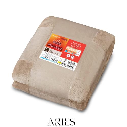 アイリスオーヤマ 2枚合わせ毛布 ダブル ベロア生地 あったか 接触温感 抗菌防臭 中綿素材 静電気防止加工 BBK-TRV-D ベージュ