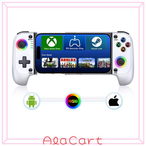 スマホコントローラー IOS/Android両用 RGBライトBluetooth モバイルゲームコントローラー 伸縮型 PS Remote Play/Xbox Cloud/Steam Link