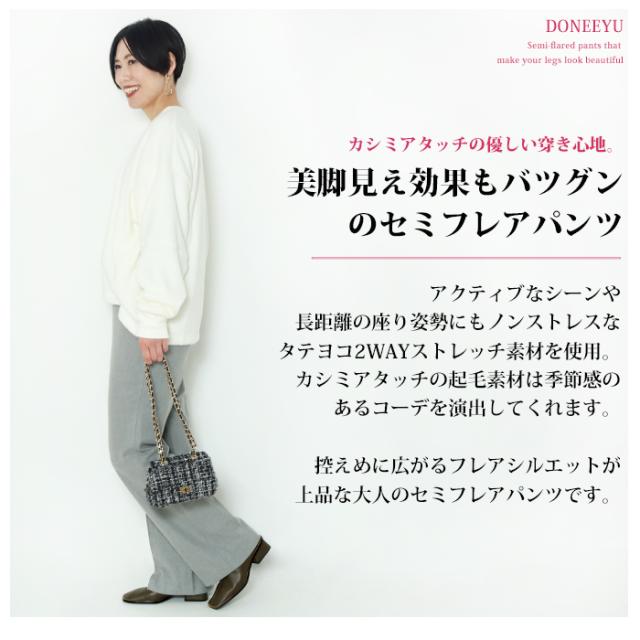 DONEEYU ドニーユ レディース 上品 起毛 微起毛 セミワイドパンツ セミワイド ブーツカット フレアパンツ 柔らかい イージーパンツ ウエストゴム きれいめ ラク 楽 手洗い可能 ゆったり ロングパンツ ファッション ボトムス オフィス ビジネス 通勤 キレカジ ブランド 女性 シンプル かわいい おしゃれ トレンド 細見え 美脚 スッキリ 黒 グレー オフホワイト 秋 冬 上質 日本製 高品質 お出かけ 大人 コーデ OL 伸びる ストレッチ 旅行 大人 冬コーデ オフィス ビジカジ OL ママ 伸びる ママコーデ 黒 ブラック グレー ■Situation■