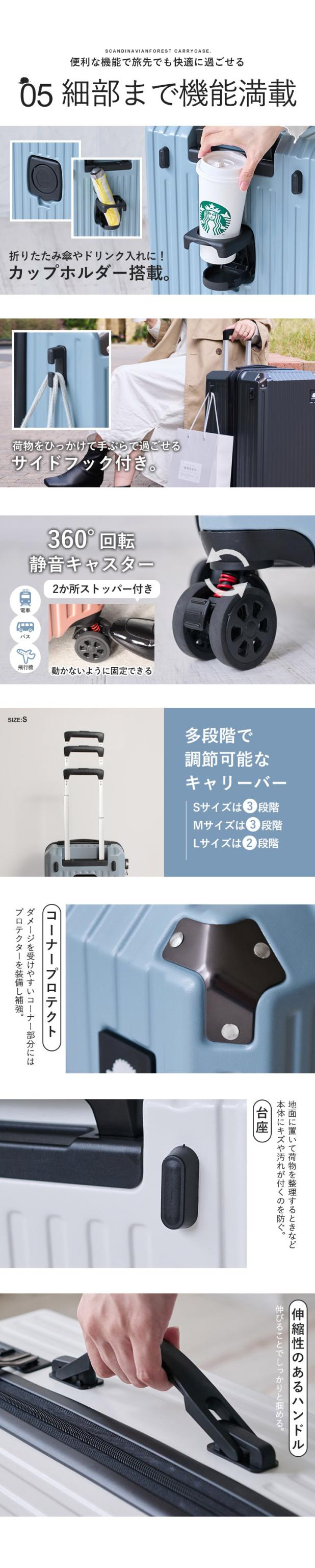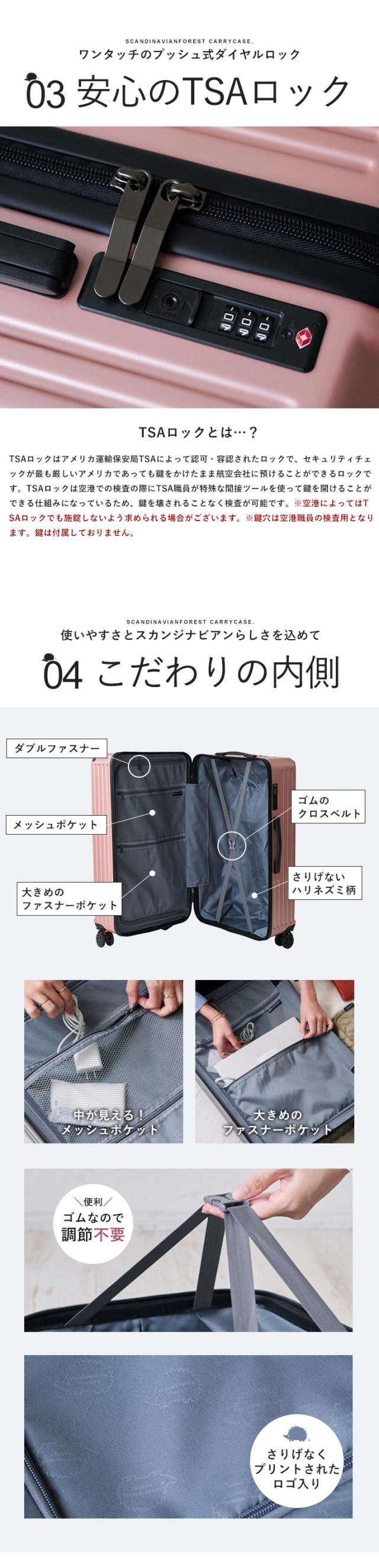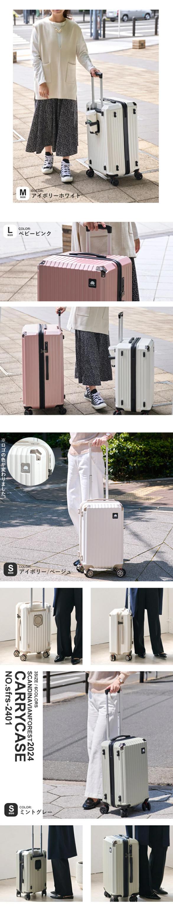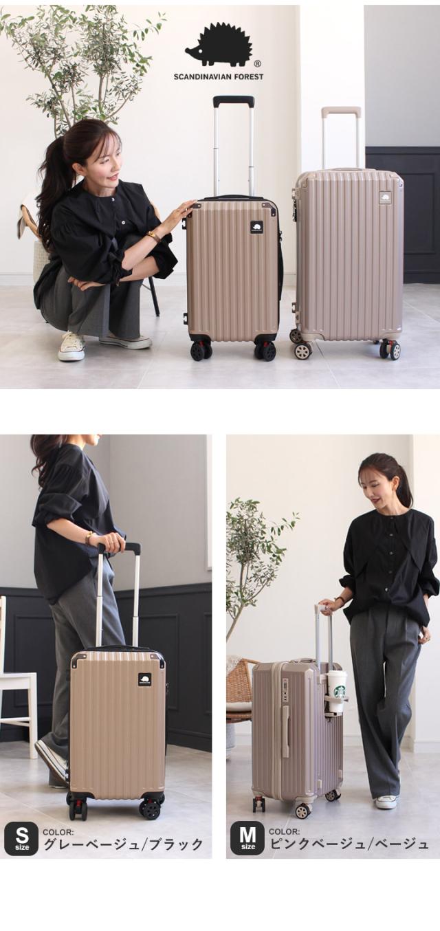 スーツケース Mサイズ 軽量 スカンジナビアンフォレスト SCANDINAVIAN FOREST 旅行 大容量 キャリーケース 機内持ち込み ドリンクホルダー キャスターロック付き TSAロック 静音 頑丈 4泊 63L おしゃれ シンプル キャリーバッグ 北欧 moz【sfrs-2401-M】
