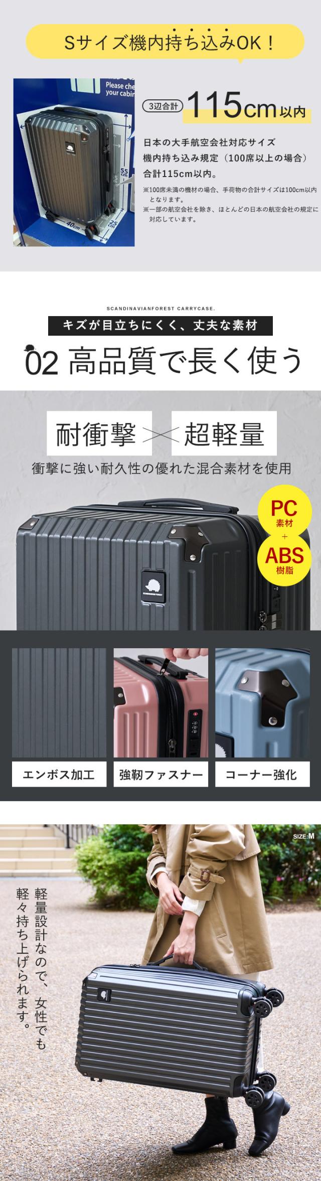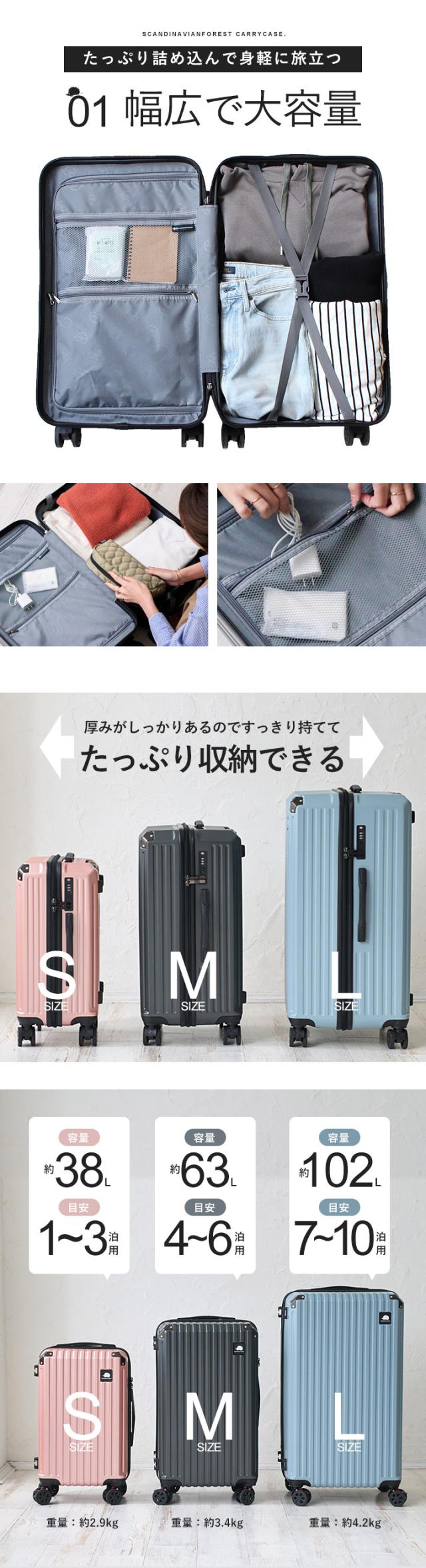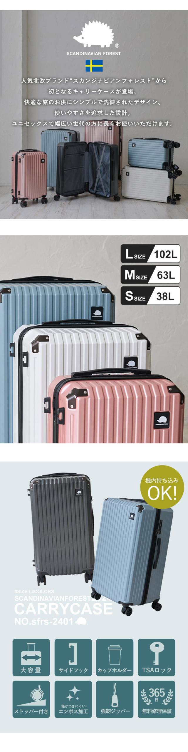 スーツケース Mサイズ 軽量 スカンジナビアンフォレスト SCANDINAVIAN FOREST 旅行 大容量 キャリーケース 機内持ち込み ドリンクホルダー キャスターロック付き TSAロック 静音 頑丈 4泊 63L おしゃれ シンプル キャリーバッグ 北欧 moz【sfrs-2401-M】