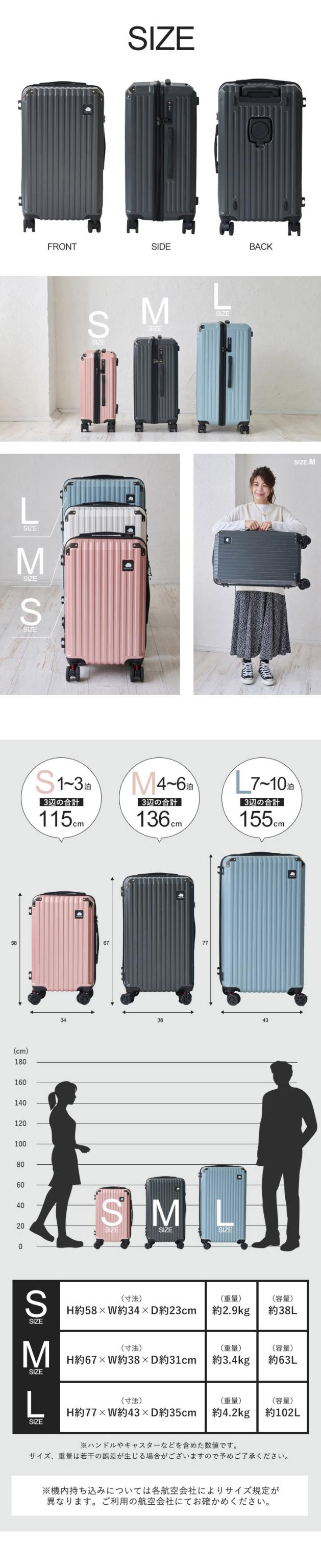 1泊?10泊まで日程に合わせて選べる3サイズ展開!