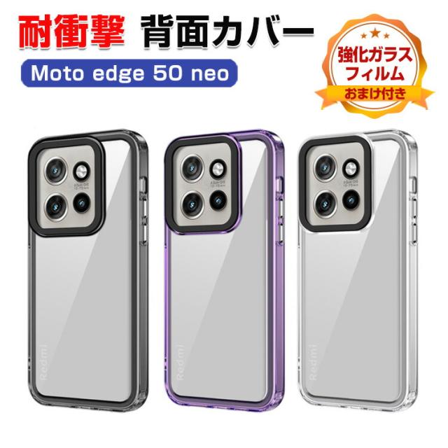 motorola Moto edge 50 neo ケース 耐衝撃 カバー タフで頑丈 2重構造 TPU&アクリル 透明 背面カバー 衝撃吸収 落下防止 高級感があふれ おしゃれ カッコいい 人気 衝撃に強い モトローラ エッジ50 ネオ ケース 背面カバー クリア 保護ケース 強化ガラスフィルム おまけ付き
