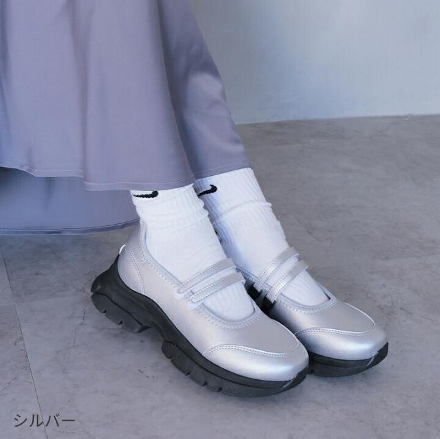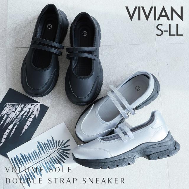 【全品10%OFFクーポン】秋新作 VIVIAN 厚底スニーカー スニーカー おしゃれ ストラップ メリージェーン バレエコア レディース メンズ キッズ 子供 おしゃれ 厚底 ブラック 黒 シルバー メタリック V8030AL